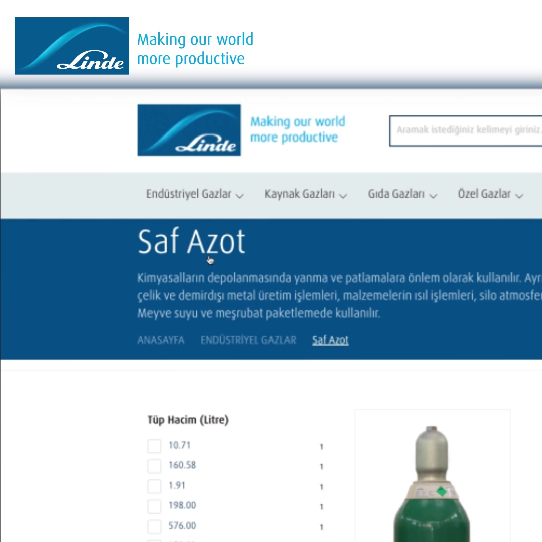 Tüm iş süreçlerinin dijital ortamlara yöneldiği günümüzde, işinizin hızına uygun Linde e-market hizmetinizde. Kullanıcı dostu ara yüzü ile tüm endüstriyel gaz ihtiyaçlarınız için doğru adres: www.lindegazmarket.com