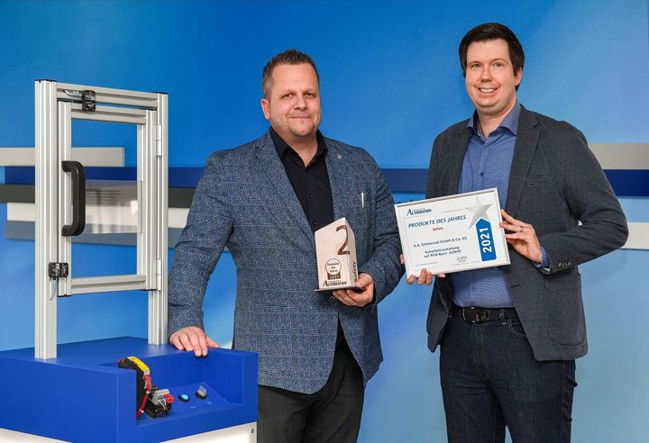 Philip Schmersal und Stephan Frick proudly present: Silberpokal und Auszeichnung für unsere neue Sicherheitszuhaltung AZM40 – die kleinste elektronische Sicherheitszuhaltung der Welt! Die Zuhaltung zählt zu den Gewinnern des Wettbewerbs „Produkt des Jahres 2021“ des Weka Fachmedien Verlages. Herzlichen Glückwunsch an unser AZM40-Team! Wer wissen möchte, was die Zuhaltung alles kann, sollte sich das Video-Interview mit Produktmanager Stephan Frick unter diesem Link anschauen: https://www.computer-automation.de/steuerungsebene/safety-security/safety-die-gewinner.185777.2.html